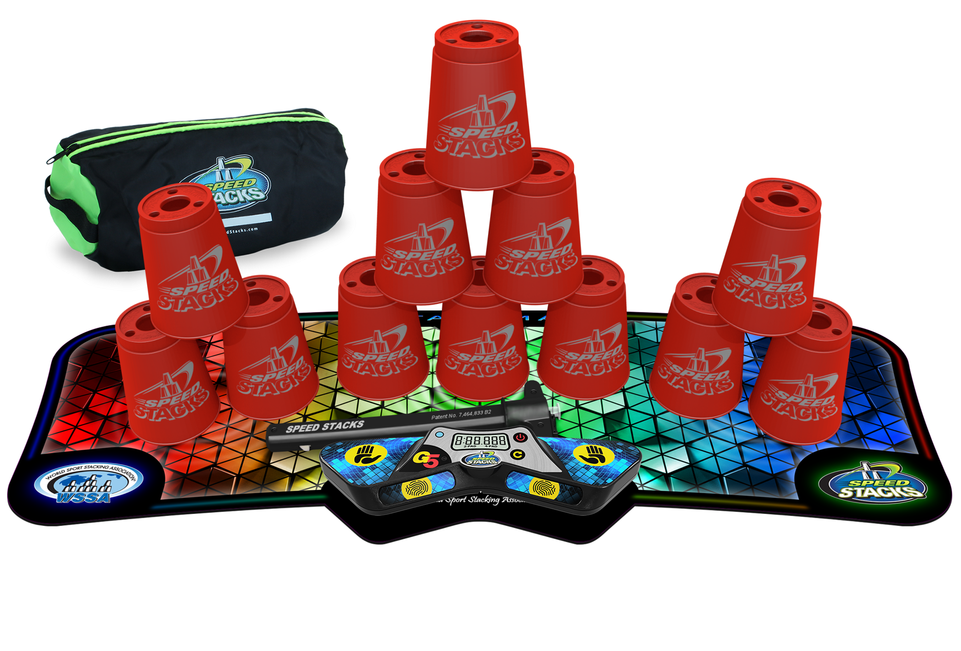 Det komplette Speed Stacks-sæt giver dig alt, hvad du behøver for at komme i gang med Sport Stacking! Sættet inkluderer dit valg af hvilken som helst kopfarve, en G5 Timer, en G5 Mat, en Quick Stem samt en Gear Bag.