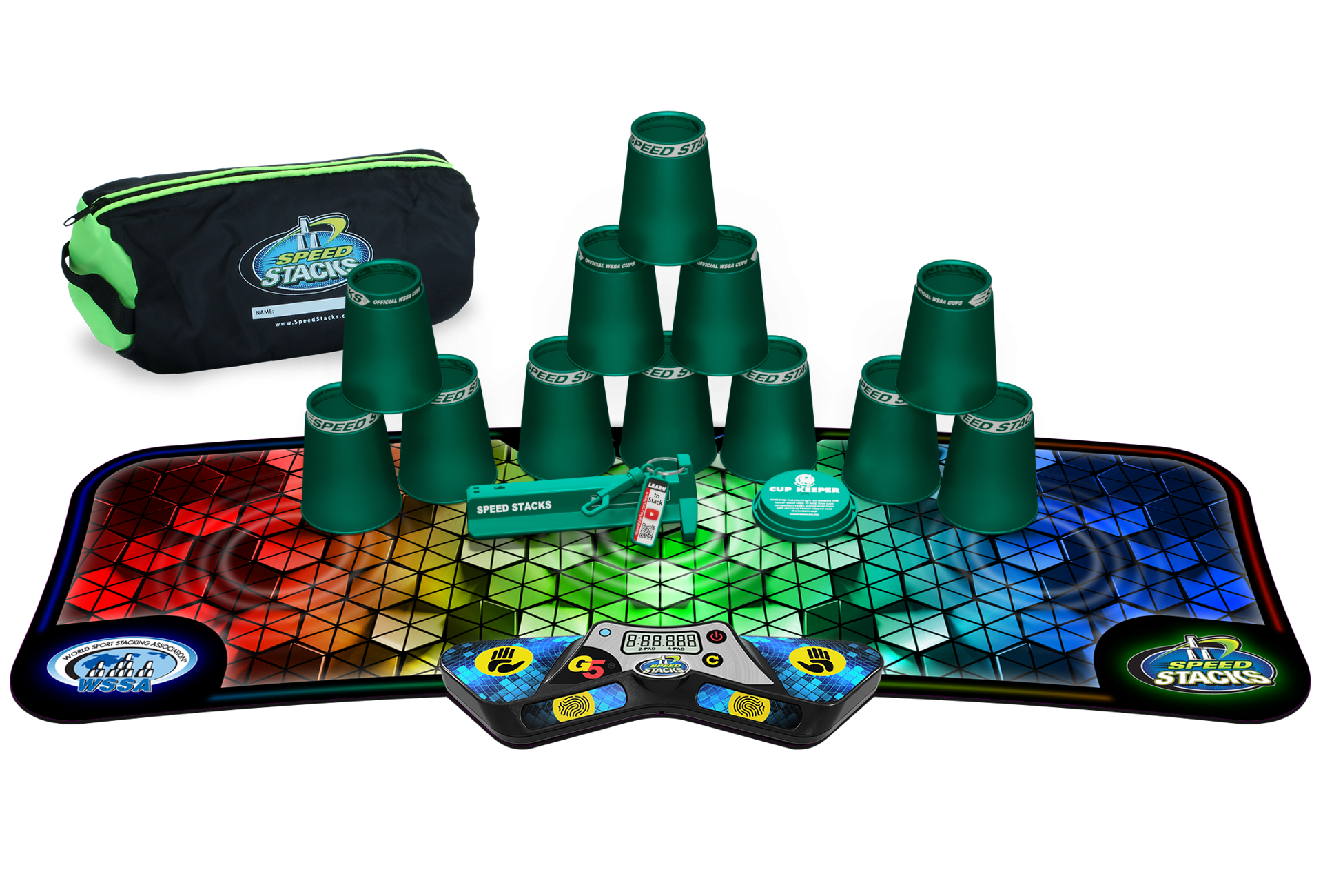 Det komplette Speed Stacks-sæt giver dig alt, hvad du behøver for at komme i gang med Sport Stacking! Sættet inkluderer dit valg af hvilken som helst sæt Pro Kopper, en G5 Timer, en G5 Mat, en Quick Stem samt en Gear Bag.